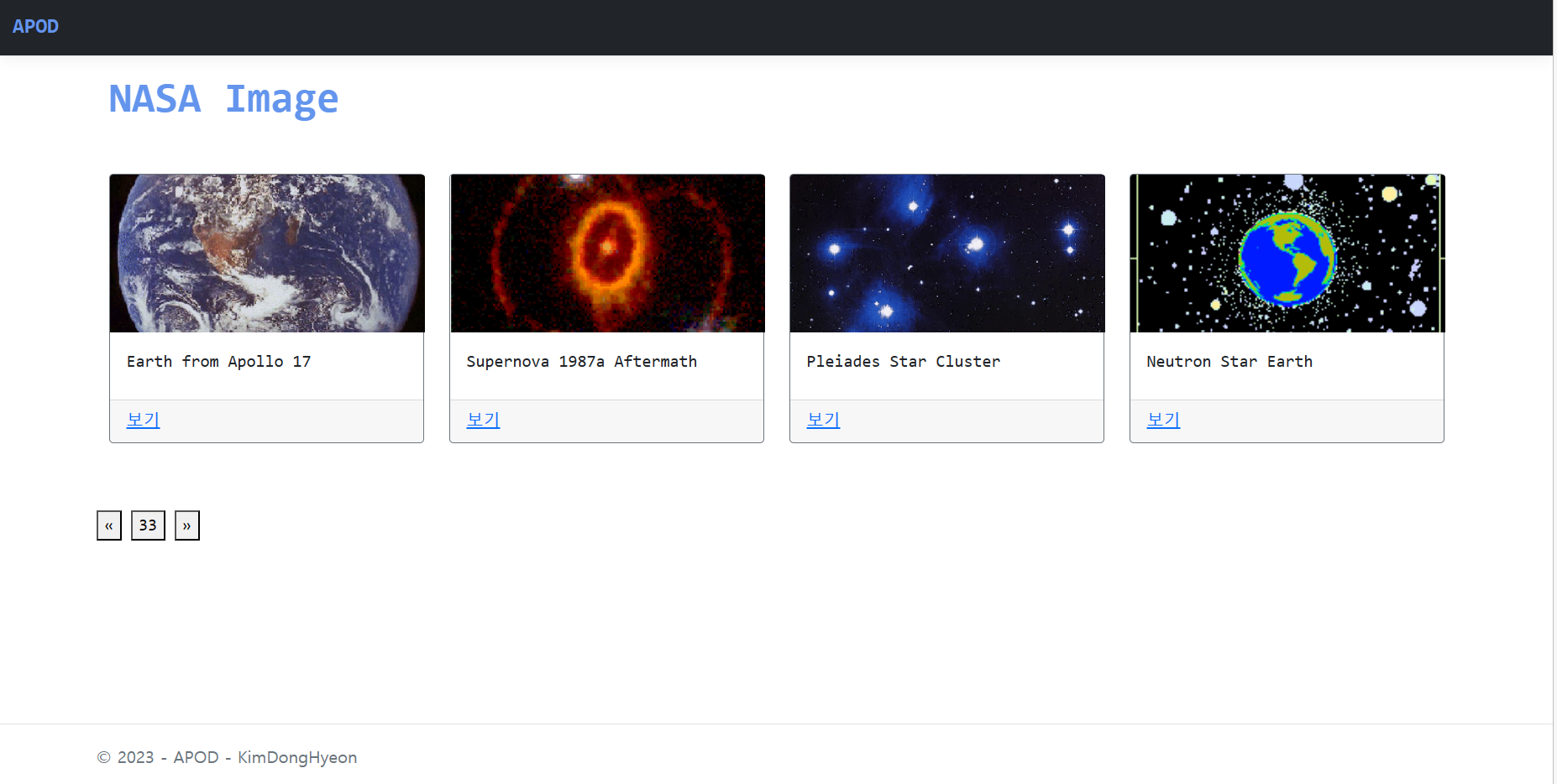 "현재의 APOD 사이트는 오늘의 apod 정보만을 가져와서 게시물의 형식으로 저장하는데, 만약 특정한 날에 웹사이트에 방문한 사람이 아무도 없다면 그 날의 apod 정보는 누락된 채 사이트가 운영된다. 그렇다면 웹사이트에 접속할 떄마다 모든 날의 apod 정보를 가져와서 db에 특정날짜의 apod 정보가 없다면 저장시키는 방식으로 사이트를 만들면 되지 않을까?"