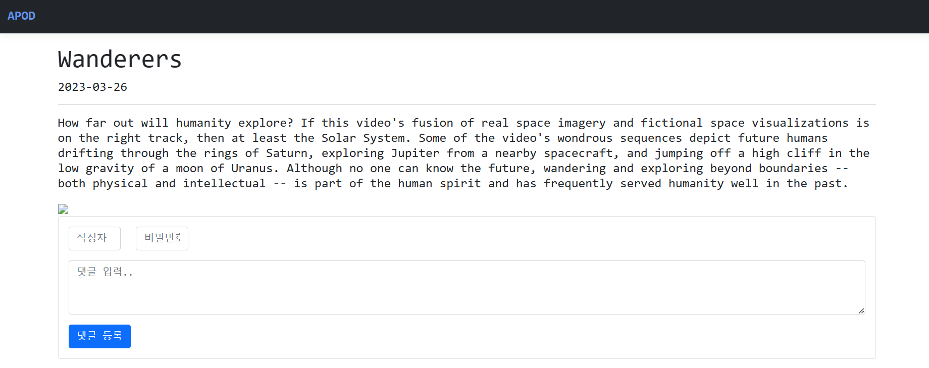 | [ASP.NET Core/APOD] 여러날짜의 apod 정보를 가져와서 한번에 db에 저장하기 (feat. DB용량 안습) (0) | 2023.04.14 |