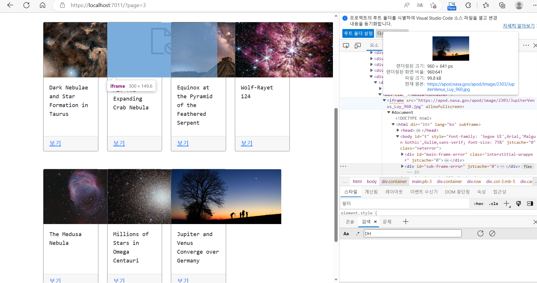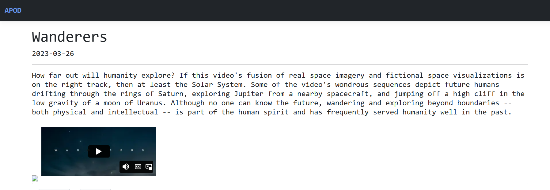 NASA의 APOD api가 제공하는 우주 정보 중에는 이미지가 아닌 영상도 존재한다. 따라서 img 태그만으로 이를 받아들일 경우